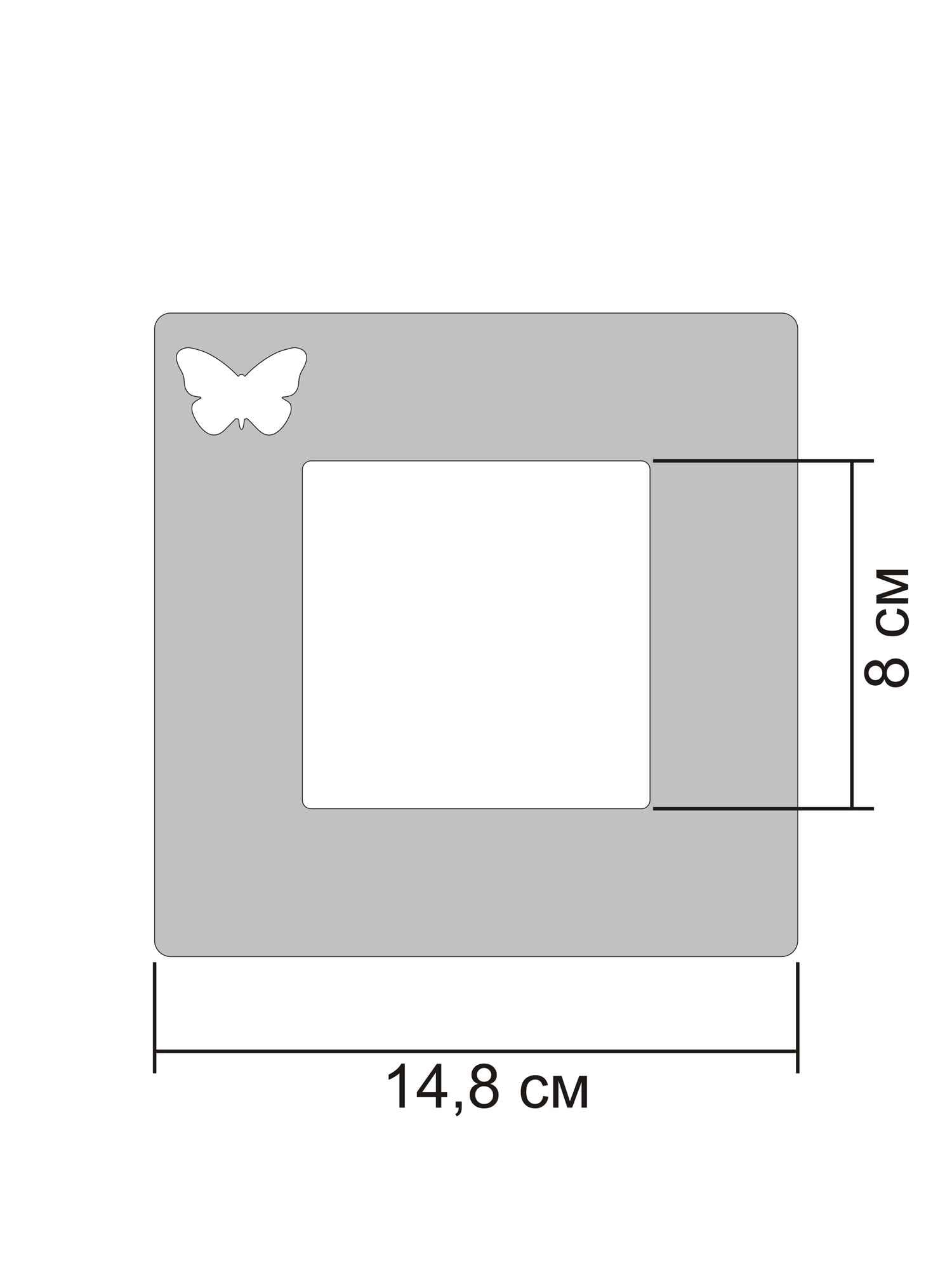 Розміри: 14,8*14,8 см, внутрішній виріз – 8*8 см. Товщина – 0,8 мм.
