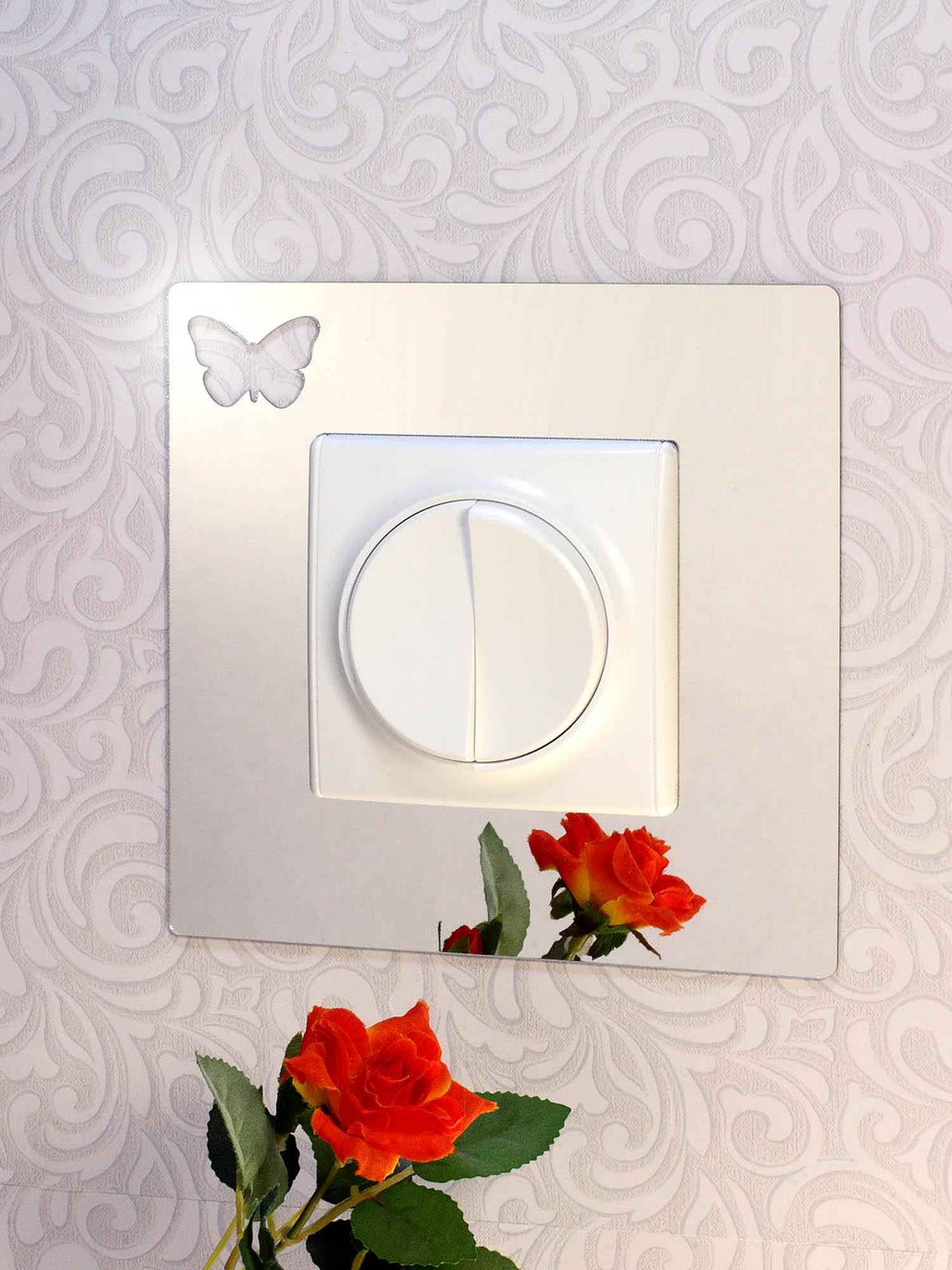 Інтер’єрні наліпки на стіну під вимикач вироблені із дзеркального акрилу на клійкій основі.